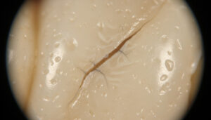 歯に起こるクラックは、裸眼で明らかにわかる場合もあれば、マイクロスコープを使って強拡大しないと見えない場合もあります。しかし、細菌は非常に小さなサイズのため、ひびが確認できた時点で、容易に細菌が侵入できるスペースが生じてしまっています。